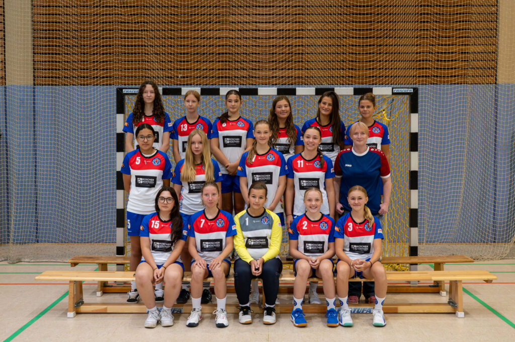 Mitte von links: Anna-Lena Strbac, Magdalena Häberle, Charlotte Schultheiß, Jana Rimmer, Melanie Krieg (Trainerin)